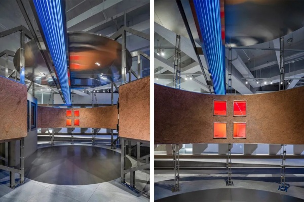 常规展厅,空间是信息的组织容器与背景氛围,两者在设计逻辑上是分离的,信息就像是空间中的装饰、空间就是信息立体化的背景,展厅的体验只是空间感的阅读。