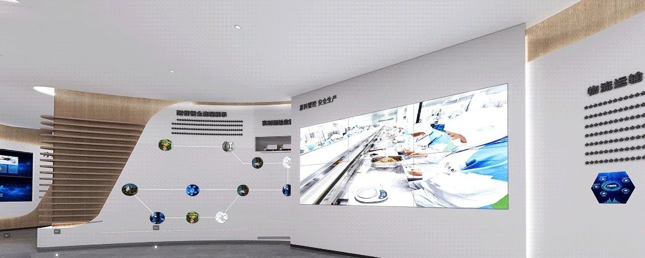 展示区通过展台+电子屏展示形式,借助简单的线条,展示企业生产的标准化、规模化、安全化。通过产品物联,实时监控,实时追溯,展现企业雄厚的技术实力,先进的科技实力。让人们在感受空间的同时,更加关注产品信息本身。