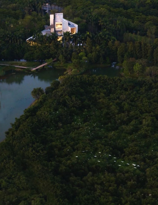 展厅选址的南面鹭鸟竹林为鹭鸟保育区,周围有环林水道,给鸟类生息提供了良好的安全屏障。人的参与既是观察者,也是被看者。湿地展厅既公共开放,更需要最小化对鹭鸟和生态造成影响。