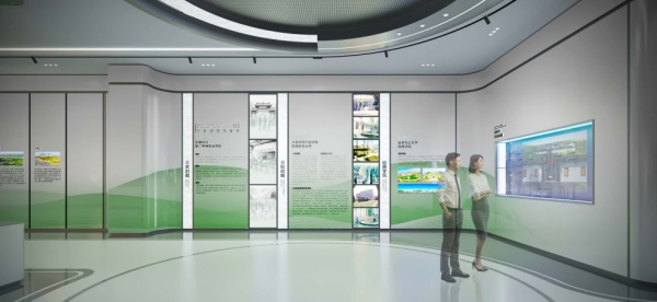 通过现代设计和先进技术,打造出一个富有未来感和互动性的展示空间。展厅内采用了冷色调灯光和反光地面,营造出一种高科技氛围。