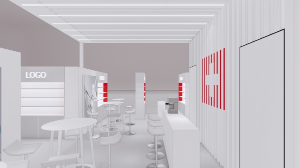 贵宾区和社交区通过设计的一致性提升了展位设计的效果。